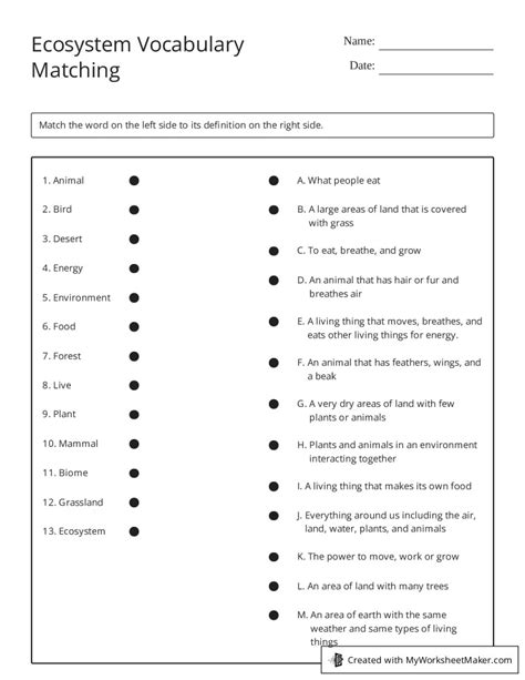 Web describe ecosystems fourth grade science worksheets. Use these ecosystem vocabulary matching cards as an individual learning center, group work, flashcards, or even an assessment tool. This is a powerpoint that introduces the vocabulary words dealing with energy in an.