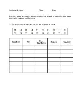 The number of hours taken by transmission mechanics to remove, repair, and replace. Web this worksheet contains one problem that asks students to complete a frequency distribution table, including constructing the classes, finding the class width, calculating. This product involve worksheets of statistics related to.