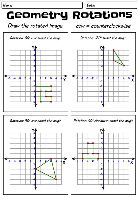 These worksheets focus on rotation, asking students to rotate basic shapes. Web students practice graphing images of figures after completing rotations of 90°, 180°, or 270° counterclockwise around the origin. Web rotations worksheet graph the image of the figure using the transformation given.