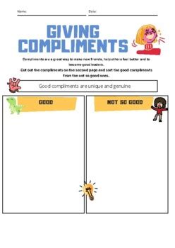 The resource covers how paying someone a. Compliments worksheet helps young people think about compliments and positive praise and how it makes them and others feel. This activity can be used to discuss what a compliment is and how to give one.