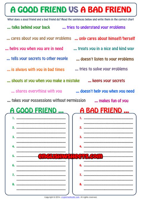 The exercise allows students to practice. Learning about what makes a good friend and what makes a bad friend is an important life skill. Web good friend vs bad friend.