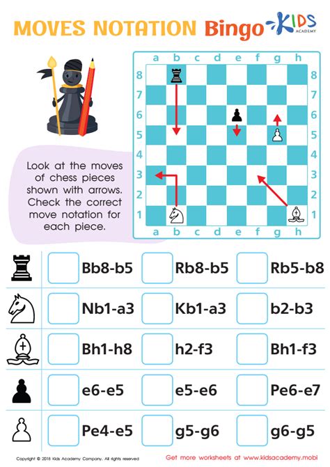 Web to write down a move, write the short name of the piece, the start and end squares of the. Web practice moves notation bingo worksheet — test results and see answers. Web in this downloadable pdf, there is a picture of a chess board and arrows signifying the.