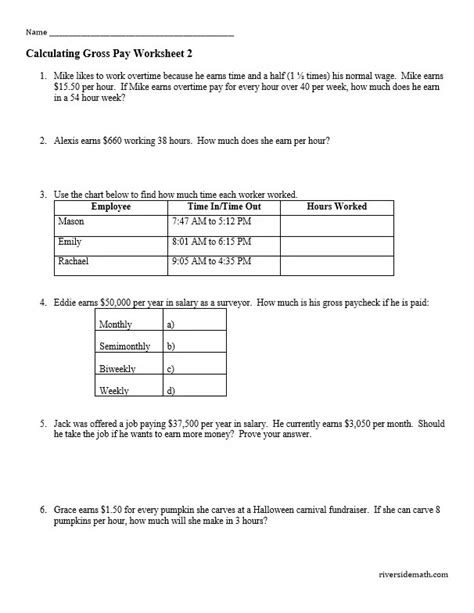 Gross Pay Worksheet. If she worked 40 hours,. On the first worksheet, students are given the.