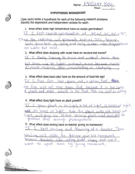 Hypothesis Practice Worksheet Answer Key. Decide on what kind of signature to create. Then they have to create a hypothesis from the given information.